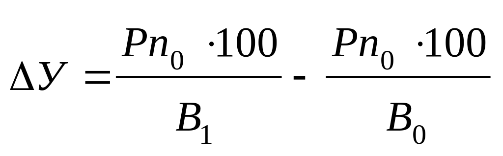 где ∆У – отклонение уровня расходов на реализацию товаров за счет влияния выручки от реализации; Рп0 – сумма условно-постоянных расходов в базисном периоде; В1 – выручка от реализации товаров в отчетном периоде; В0 – выручка от реализации товаров в базисном периоде |