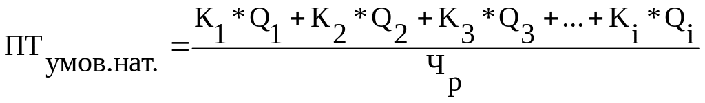 1) натуральний (ділення обсягу виробленої продукції у фізичних одиницях на чисельність робітників, або на кількість затраченого часу в нормо-годинах); різновидом натуральних вимірників обчислення продуктивності праці є умовно-натуральні;