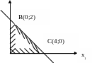 Уравнение (2) и условие неотрицательности на плоскости х1Ох2 образуют замкнутую ограниченную област. (см. рис.)
