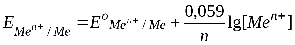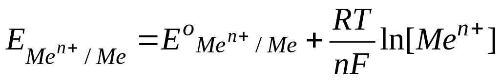 виникає подвійний електричний шар, різниця потенціалів в якому і називається електродним потенціалом. Абсолютне значення електродного потенціалу виміряти експериментально або розрахувати теоретично неможливо, тому визначають його відносну величину за допомогою електрода порівняння (водневого, каломельного тощо) чи обчислюють за рівнянням Нернста: