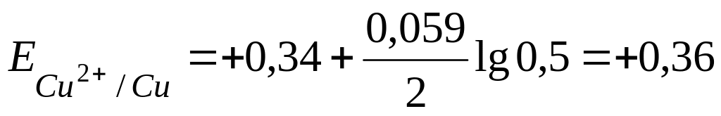 Концентрація іонів металу [Cu2+]=0,5 моль/л. Тому