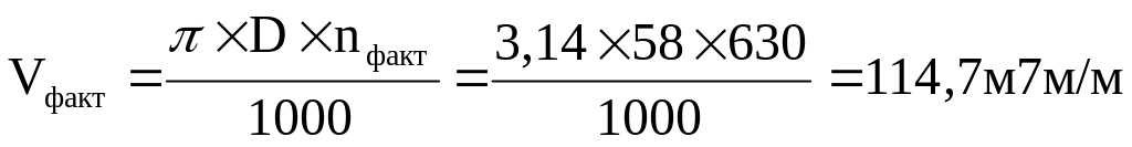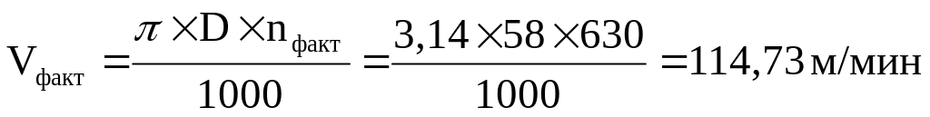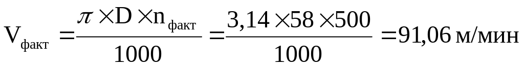 Фактическая скорость резания Vфакт, м/ мин: