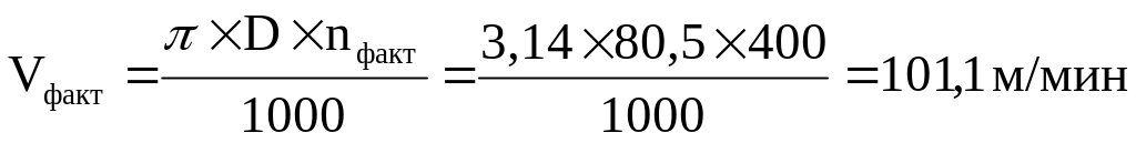 Vфакт =101,1 м/ мин