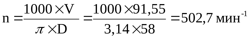 Частота вращения шпинделя n, мин-1: