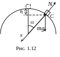 Тіло до деякої точки на півсфері – точки відриву від поверхні – рухається по дузі кола радіусом R.