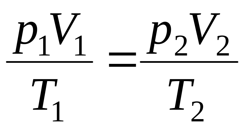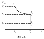Припустимо, що деяка маса газу знаходиться в стані 1, при цьому її об’єм V1, тиск р1, температура Т1. Ця ж маса газу в іншому довільному стані характеризується параметрами р2, V2, Т2. Перехід зі стану 1 в стан 2 здійснюється послідовно ізотермічним (1–1) і ізохорним (1–2) процесами (рис.2.1).
