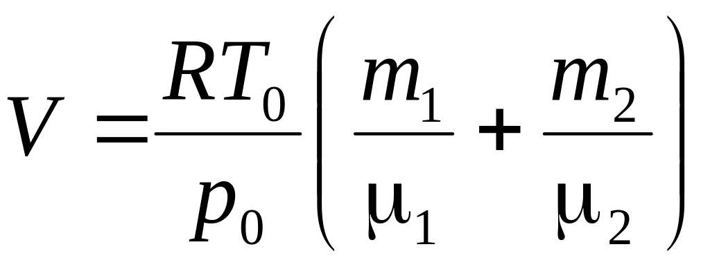 де Т0 – температура суміші, V – об’єм посудини, де знаходяться змішані гази.
