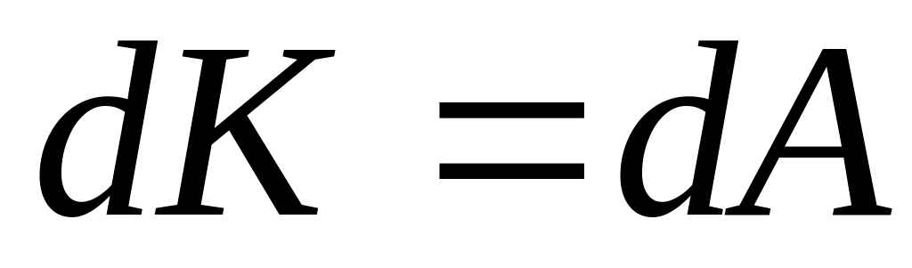 Сила, діючи на тіло, що покоїться, і викликаючи його рух, здійснює роботу, а кінетична енергія рухомого тіла зростає на величину витраченою роботи. Таким чином приріст кінетичної енергії частинки на елементарному переміщенні рівний елементарній роботі на тому ж переміщенні