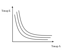 В соответствии с данной моделью покупатель «безразличен» к выбору и сочетанию товаров, имеющих одинаковую полезность. Отказ от одного из товаров (например, при повышении цены) компенсируется потребителем путем замещения его другим товаром в другом количестве. Графически это отражается в виде кривой безразличия – графического отображения тех или иных равноценных для данного потребителя набора товаров. Множество кривых безразличия, каждая из которых представляет различный уровень полезности, составляет карту безразличия (рис.4.3).