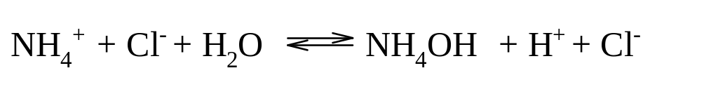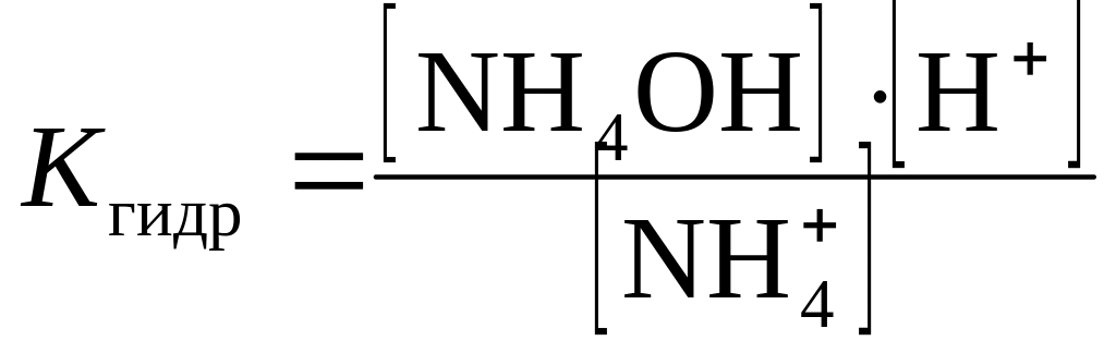 Из уравнения гидролиза видно, что [NH4OH] = [H+]. Вследствие практически полной диссоциации солей в растворе при небольших значениях степени гидролиза равновесная концентрация NH4+-иона мало отличается от начальной, т.е. можно принять, что [NH4+]равн. = Ссоли. Тогда получаем расчетную формулу: