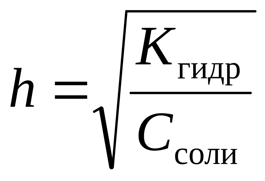 Степень гидролиза h связана с константой гидролиза следующим уравнением: