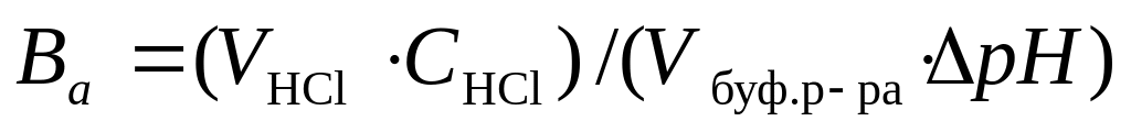 Буферную ёмкость Ва (моль/л) рассчитайте по формуле