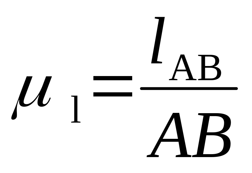 Выберите произвольную длину отрезка, изображающего на чертеже одно из звеньев механизма. Например, пусть кривошип 1 будет изображаться отрезком длиной АВ = 20 … 30 мм. Вычислите масштаб длин