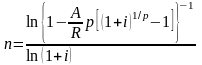 Формулы для расчета срока постоянных запаздывающих рент