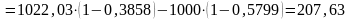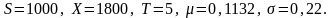 Пример 7.5. Текущая цена акции 1500 рублей. Известно, что к концу периода она может либо подняться на 25%, либо опуститься на 20%. Определим цену пятипериодного европейского колл-опциона на одну акцию, если цена его исполнения равна 3000 рублей, а безрисковая процентная ставка составляет 10%. Итак,