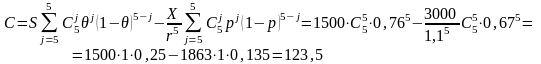 Тогда справедливой ценой опциона будет математическое ожидание случайной величины , дисконтированное по безрисковой процентной ставке: