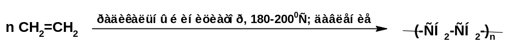 Примером свободнорадикальной полимеризации является промышленное получение полиэтилена высокого давления: