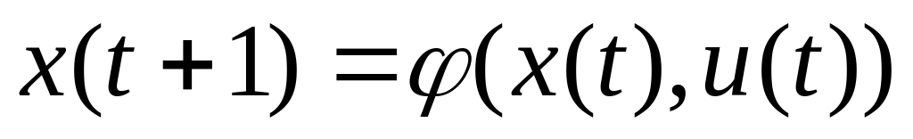 Таким образом, работа конечного автомата происходит по следующей схеме: в каждом t-м такте на вход автомата, находящегося в состоянии x(t), подается некоторый сигнал u(t), на который автомат реагирует переходом в (t+1)-м такте в новое состояние x(t+1) и выдачей некоторого выходного сигнала.