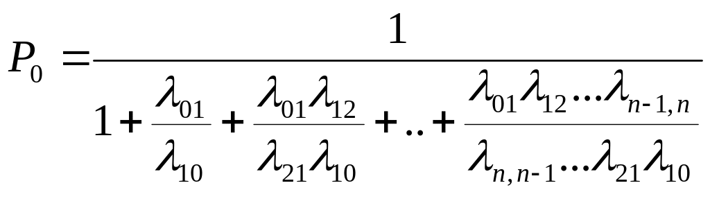 После подстановки вероятностей в нормировочное уравнение выражение для определения вероятности нулевого состояния примет следующий вид: