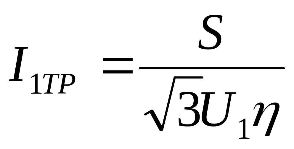 Рабочий ток кабеля, питающего преобразователь, принимается равным номинальному току на входе преобразователя. Например, для кабеля, питающего трехфазный трансформатор, значение рабочего тока определяется по формуле