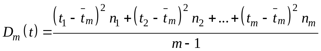 Пусть в n рабочих циклах получена выборка времени t1, t2,..., tn с дисперсией Dn(t), состоящая из m n различных элементов ti,..., ti+j,..., tm, причем этот набор элементов имеет дисперсию Dm(t). Очевидно, что: