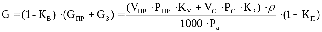 Q – подача джерел зарядки (кг/год., м3/год.).