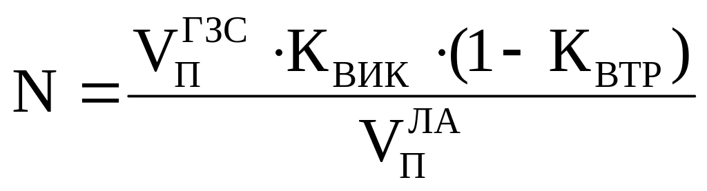Кількість літальних апаратів, що заряджаються від однієї газозарядної станції, у загальному вигляді, визначається за формулою: