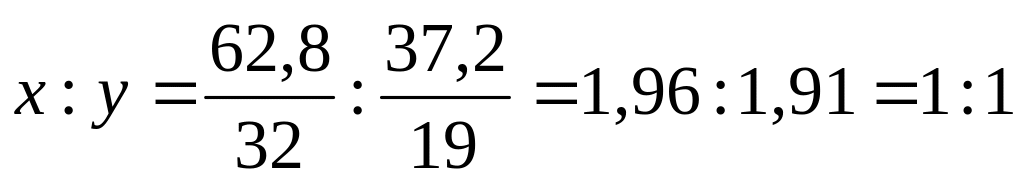 2. Образование оксида кадмия можно записать в виде схемы реакции Cd + O CdO, для которой составим пропорцию согласно закону эквивалентов: