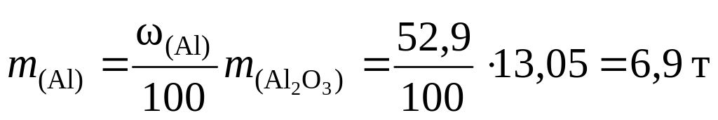 Пример 1. Определить массовую долю алюминия в его оксиде и вычислить, сколько алюминия теоретически можно выделить из 15 т боксита с содержанием Al2O3 87 %.