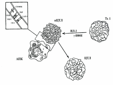 В ряде случаев для дифференцировки ЦТЛ требуются дополнительные цитокиновые сигналы от Тх1 (ИЛ-2, γ-ИФН) и от других клеток (ИЛ-4,6 и др.), которые обеспечивают полноценную активацию, пролиферацию и дифференцировку пЦТЛ до зрелых ЦТЛ.