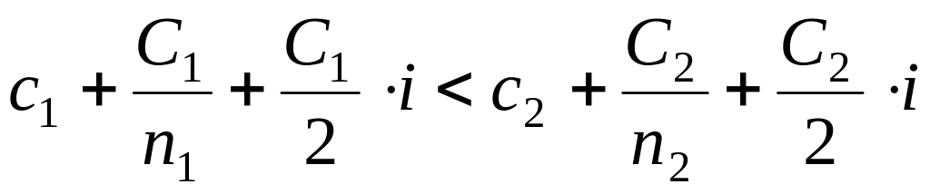 Кpитеpий відбору альтернативних інвестицій можна сформулювати наступним образом: інвестиція 1 вигідніша за інвестицію 2, якщо середнєрічні витрати по її реалізації К1 менші, ніж К2 (К1 < К2), або інвестиція 1 вигідніша за інвестицію 2, якщо середня собівартість одиниці продукції С1 менше С2 (С1 < С2).