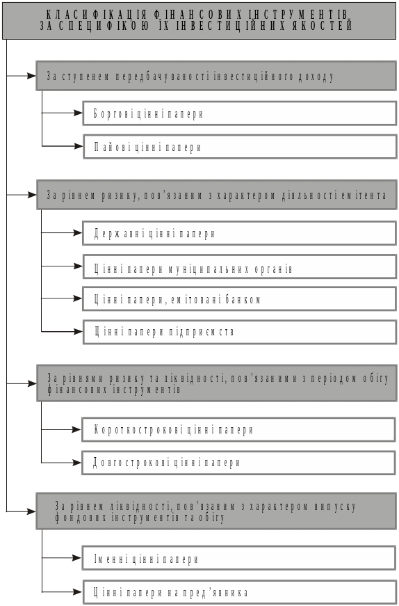 Рис. 5.2. Класифікація фінансових інструментів за специфікою їх інвестиційних якостей