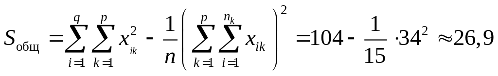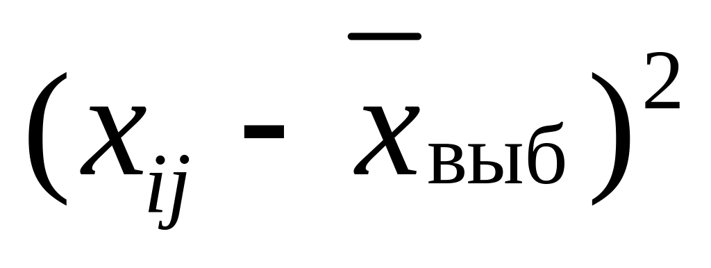 Для этого оценим разность квадратов отклонений наблюдаемой величины и выборочной средней по всему массиву: