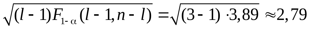 Так как , следовательно, утверждать равенство групповых средних нельзя, то есть гипотеза о влиянии фактора на случайную величину подтверждается.