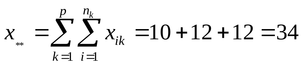 Для построения дисперсий необходимо найти выборочные средние по каждому уровню и выборочную среднюю по всему массиву.