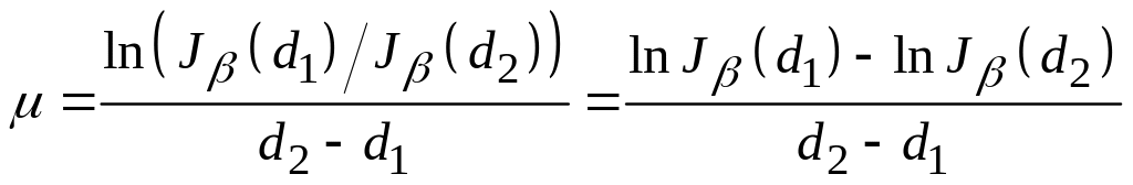 Преимущество этой методики по сравнению с методикой максимального пробега заключается в отсутствии большой погрешности определения значений , так как значения, например, d1/2 и d1/4, можно определить с меньшей погрешностью, поскольку значение функции ослабления J(d1/2), J(d1/4)много больше уровня фона и их можно легко оценить путем интерполяции экспериментальной зависимости .