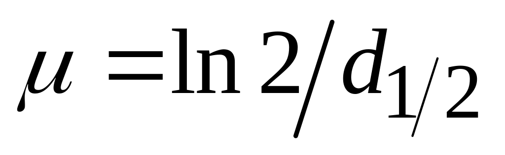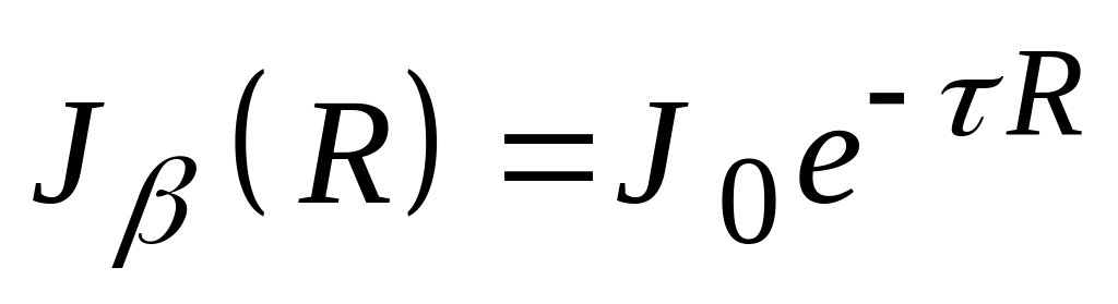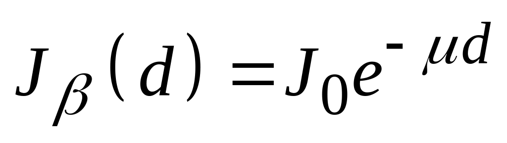 Ослабление бета-излучения в веществе, то есть функцию ослабления можно приближенно представить показательной функцией для нетолстых слоев поглотителя (в сравнении с пробегом бета–частиц – ):