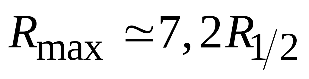 Величина слоя половинного ослабления d1/2 связана с максимальным пробегом , например в алюминии, приближенным соотношением: