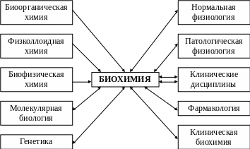 Рис. 1.1. Связь биохимии с другими дисциплинами