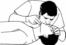 Сделать достаточно глубокий вдох, прижать рот ко рту пострадавшего, обеспечить полную герметичность; сильно, резко выдохнуть воздух в рот пострадавшего.