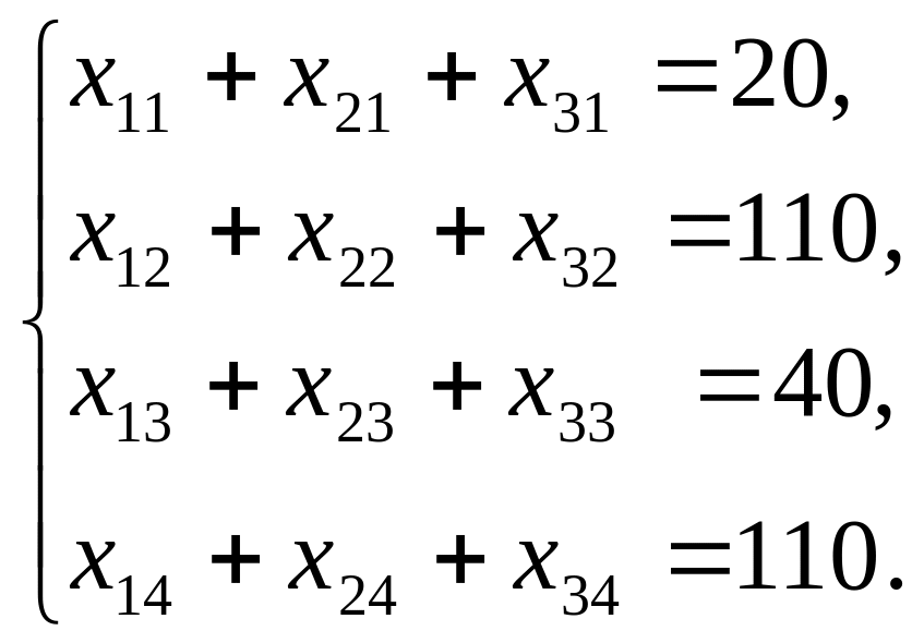 Так как необходимо вывезти весь груз с каждого пункта отправления то должны выполняться равенства: