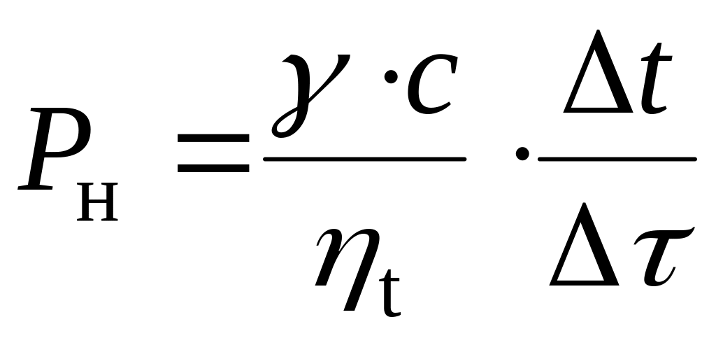 Питому потужність, необхідну для нагрівання продукту, визначають за формулою, Вт/м3:
