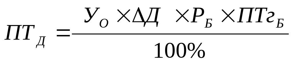 Д - середнє число днів, відпрацьованих одним працівником виробництва;