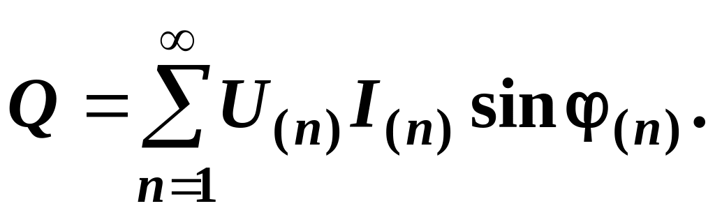Активна потужність від взаємодії різнойменних гармонік дорівнює нулю. За аналогією з поняттям реактивної потужності у колі синусоїдного струму може бути введене поняття реактивної потужності у колі з періодич-ними несинусоїдними величинами. Реактивна потужність визначається як сума реактивних потужностей окремих гармонік.