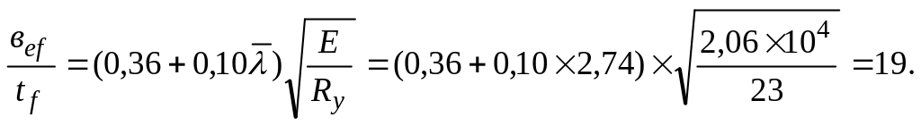 Граничне значення відношення звісу полиці до її товщини обчислюємо за формулою табл.6.1: