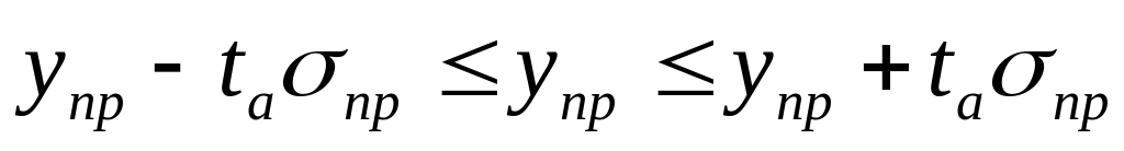 Інтервальний прогноз вказує у якому інтервалі перебуває значення залежної змінної, якщо незалежні змінні задано прогнозним вектором Хпр.