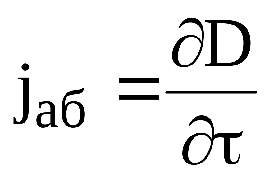 Плотность тока смещения определяется скоростью изменения вектора индукции D, обусловленного мгновенными и замедленными смещениями зарядов: