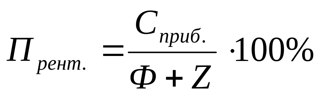 где Сприб. - сумма полученной прибыли от реализации объекта производства, руб.; Ф – стоимость основных производственных фондов, руб.; Z – норматив оборотных средств, руб.