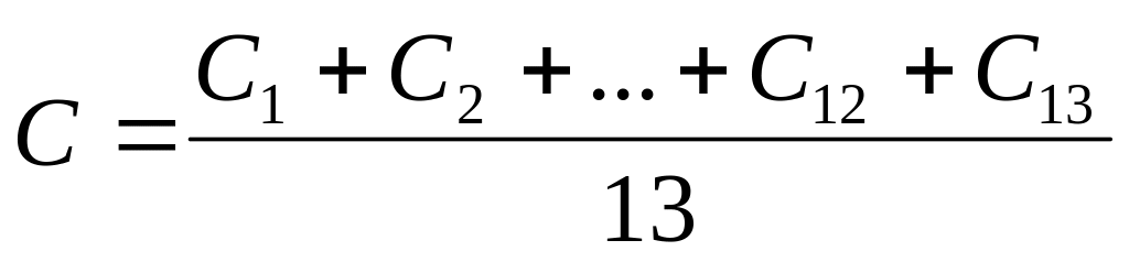 Где,С1, С2...С12 - стоимость оборотных средств на начало каждого месяца года; С13 – стоимость оборотных средств на начало следующего года.