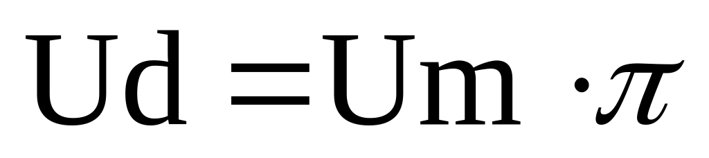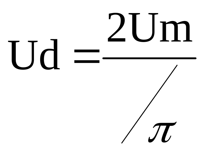 Середнє значення вихідної напруги Ud (постійна складова) мостового випрямляча обчислюється за формулою: